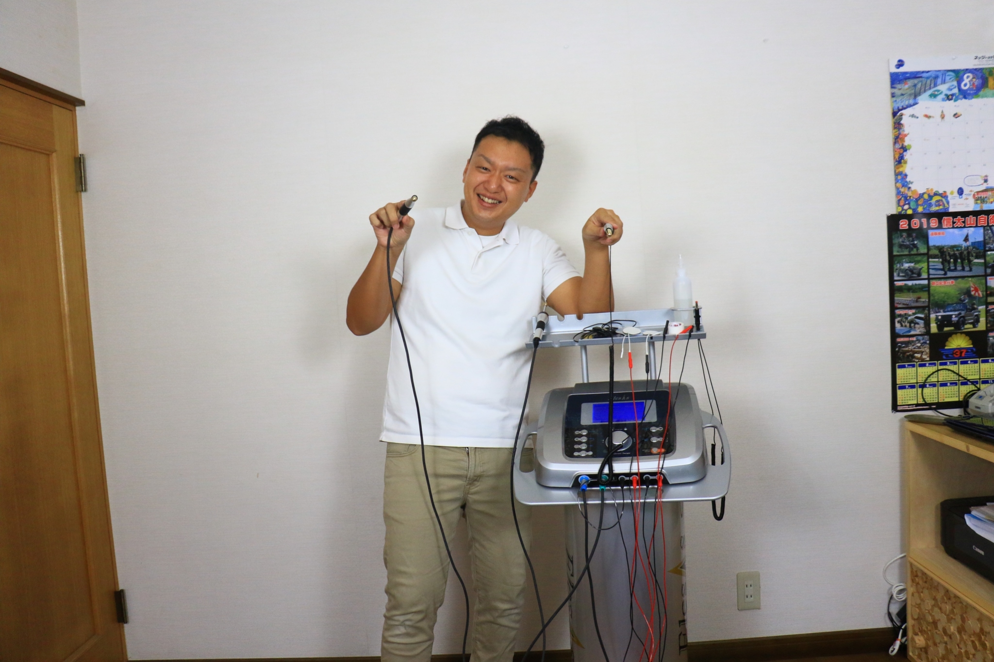 微弱電流により治療を行う機械でサッカーや野球のプロの選手などトップアスリートもケガの治療や体のケアやメンテンナンス、パフォーマンス向上に使用しています。